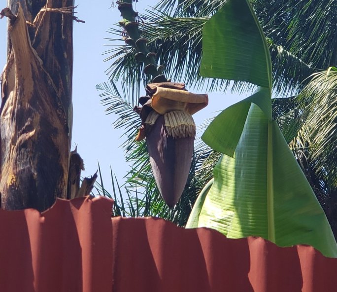 I also love watching them as they grow. I became facinated with the banana flower stage while on my horseback ride in Cambodia. We rode through the grove and it took my a few minutes to realize what I was seeing. The flower simply does not look like bananas are in there. But they are.